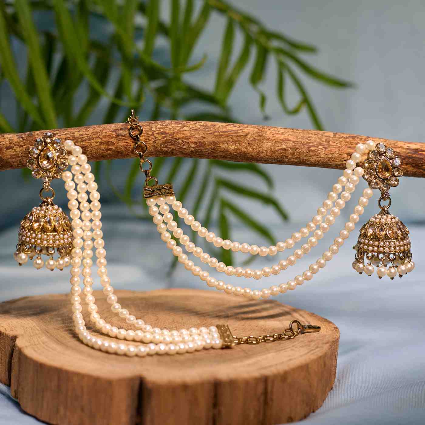 Handcrafted Jhumka Earrings with 3-Layer Kaanchain ,Bridal & Wedding Jewelry Light weight